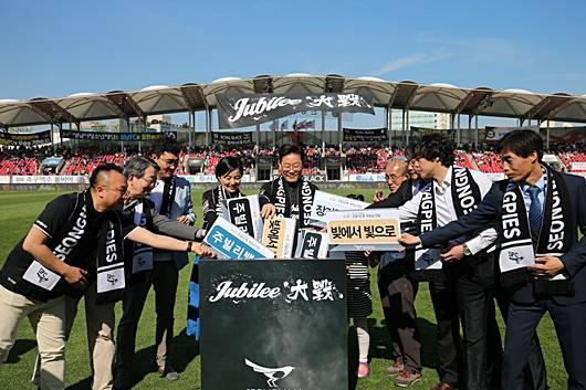 성남은 이날 경기에서 패했지만 팬들과 시민들에게 흥행과 재미, 감동을 모두 선사했다. 선수들은 골 세리머니로 ‘착한 축구, 세상을 빛나게 합니다!’라는 대형 배너를 흔들며 좋은 일에 함께 동참했고 경기에 뛰지 않는 선수들도 기부 모금 행사에 참여해 뜻을 함께 했다. 또 예상 보다 많은 1만2000여명의 관중이 입장하면서 공익 기여뿐 아니라 수익도 더 증가했다.